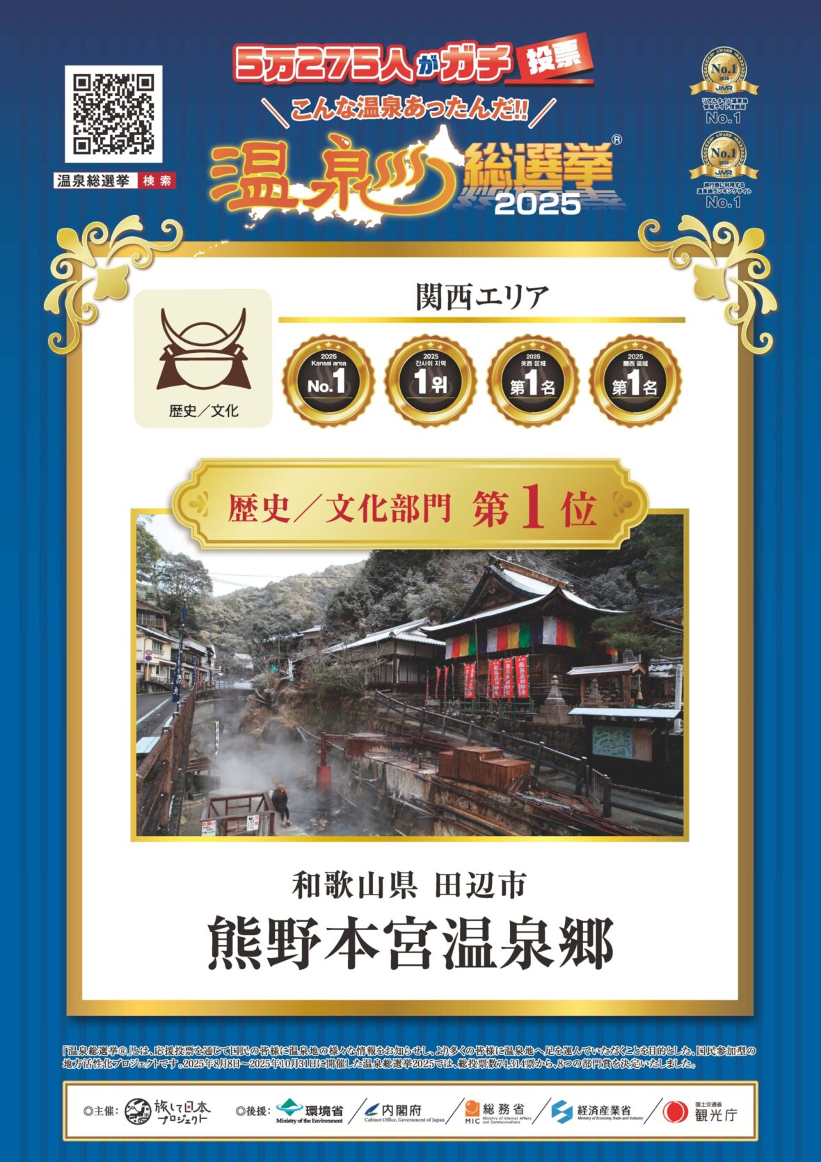 温泉総選挙2025歴史/文化部門 入賞!