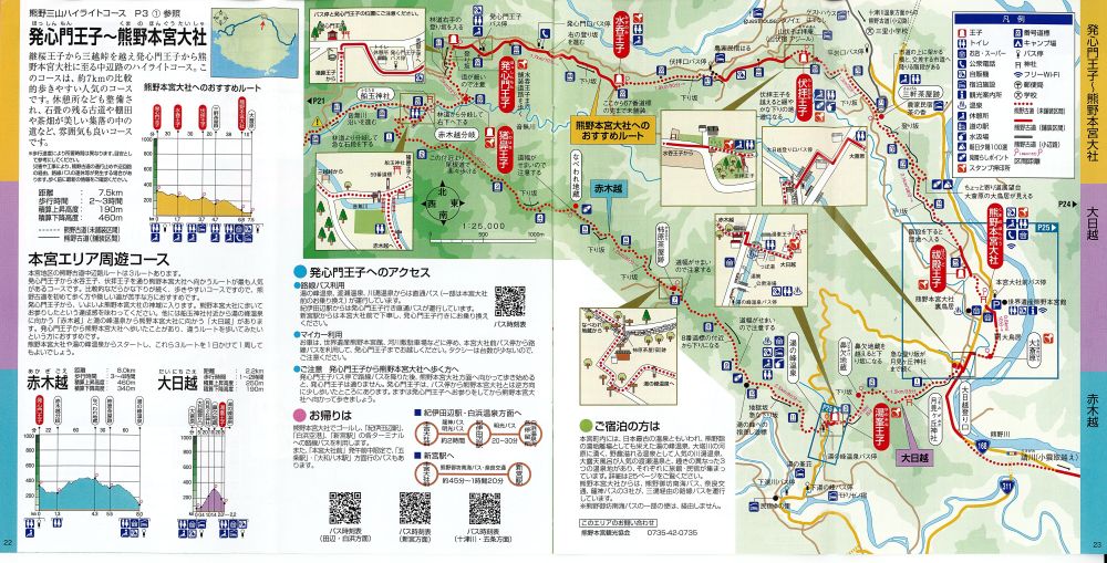 発心門王子へは、湯の峰温泉・川湯温泉・渡瀬温泉や本宮大社前バス停からバスで発心門王子へ向かいます。発心門王子から、古道を中辺路方面へ向かいます。
